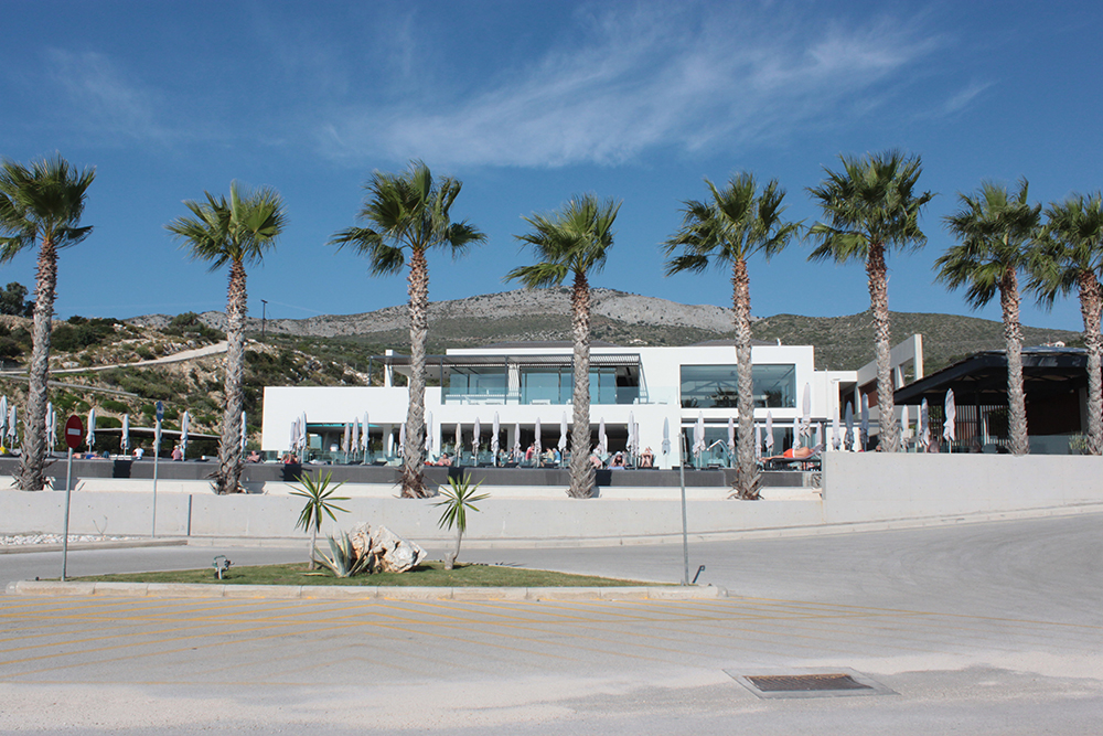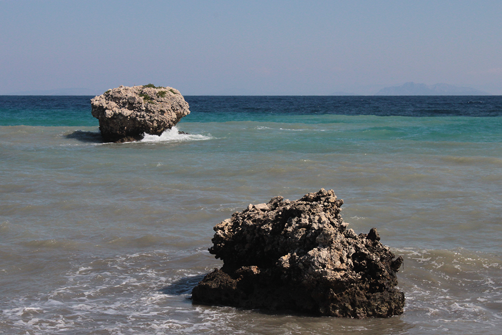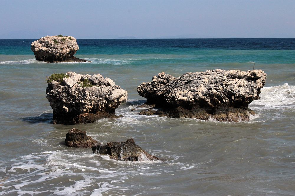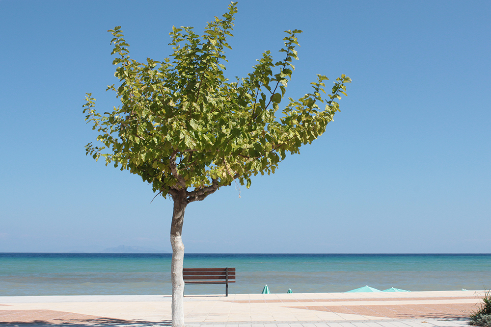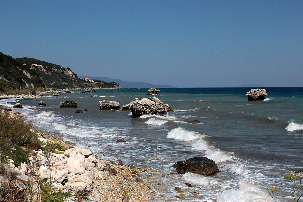 So the first real excursion I took was on foot, to Poros along the unnamed coastal road. The sign in Skala said it was 12km (about 8 miles) so I figured I could easily walk there in the morning, have a nice lunch and take a taxi back before starting work since there is not a lot of public transportation here.  Walking along Skala beach, I passed some of the big hotels, but it still doesn’t seem overdeveloped. The buildings are pretty low and they are set back from the beach road, sometimes fronted by tavernas, or gas stations or supermarkets.  It might be entirely different in July and August, but now it was very quiet and really lovely.