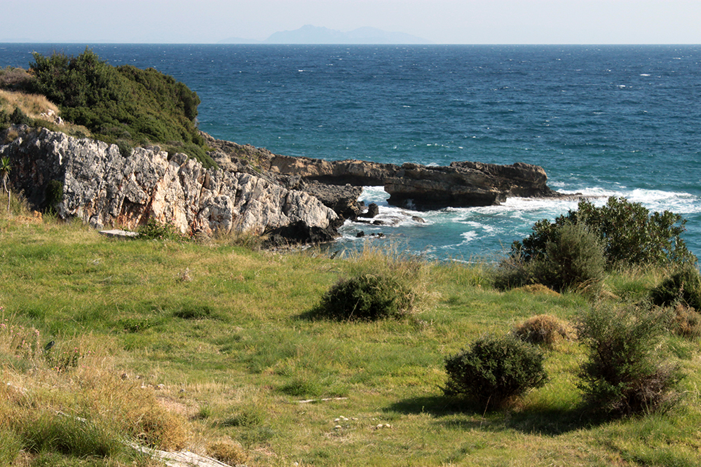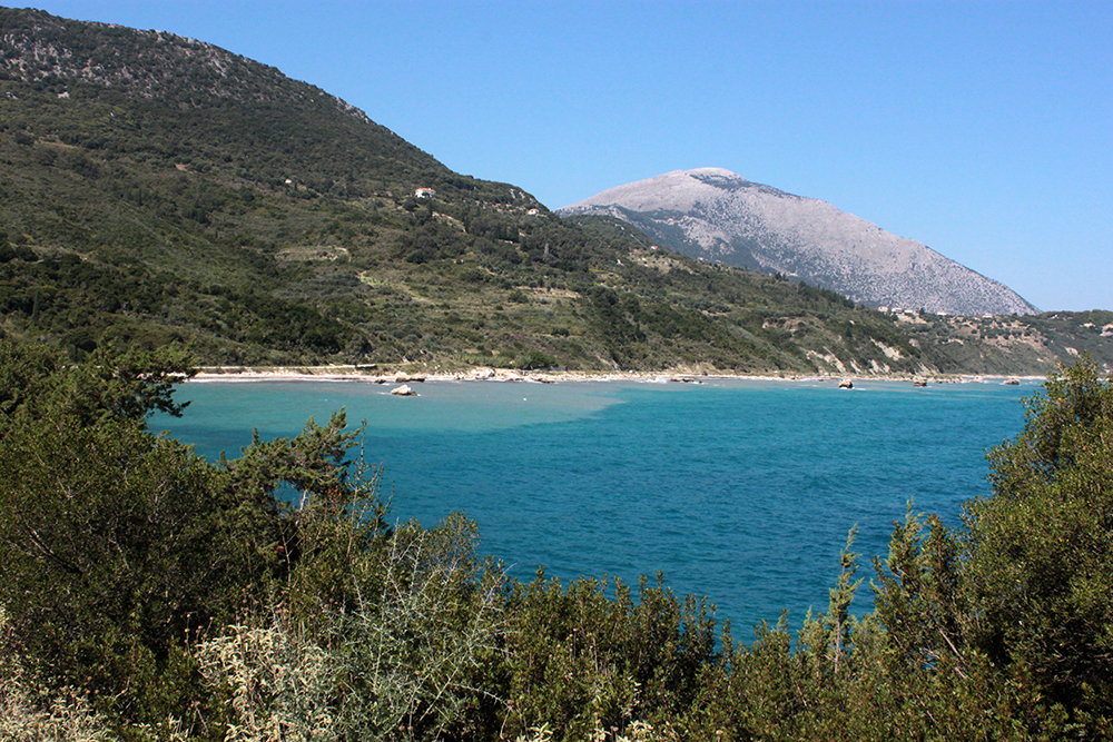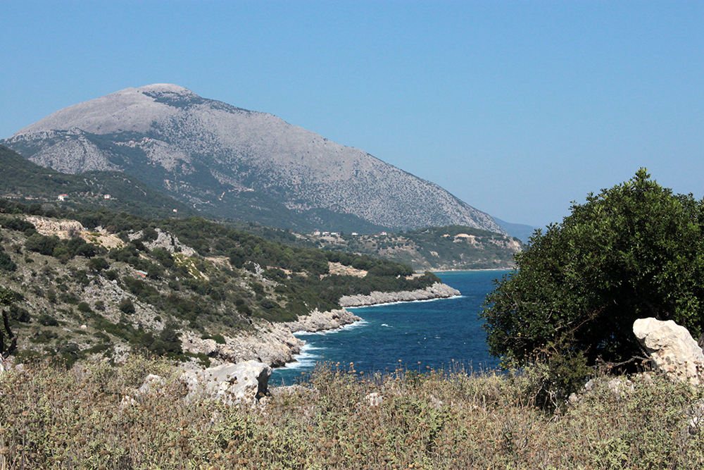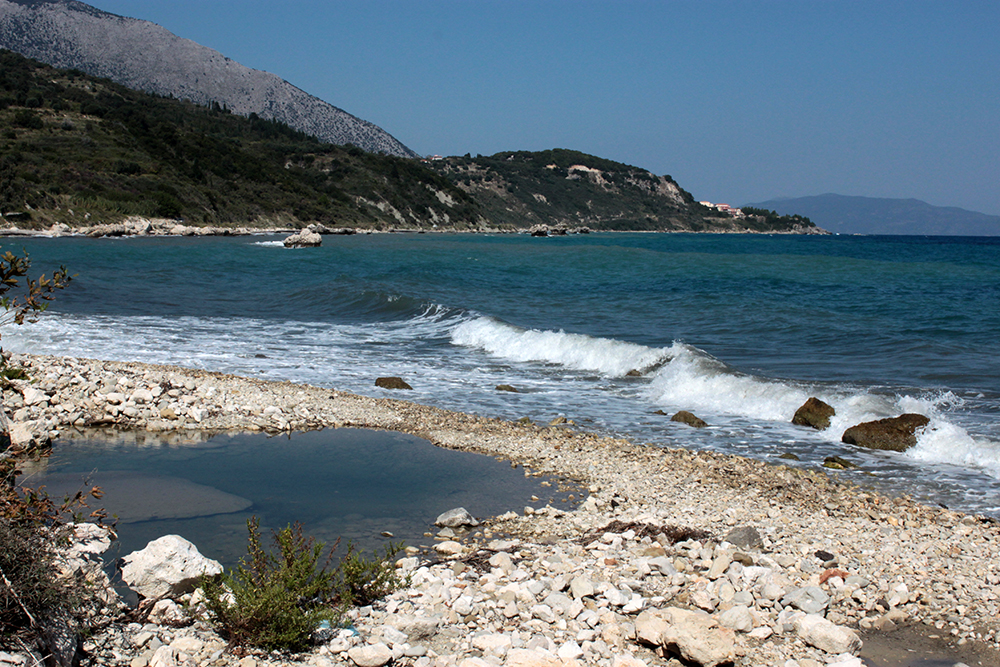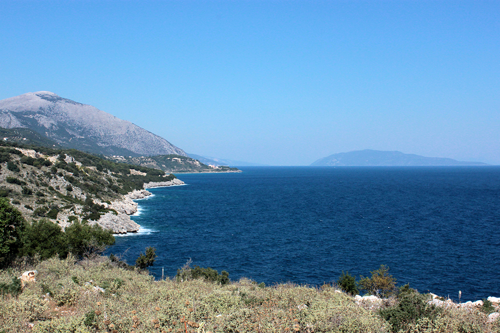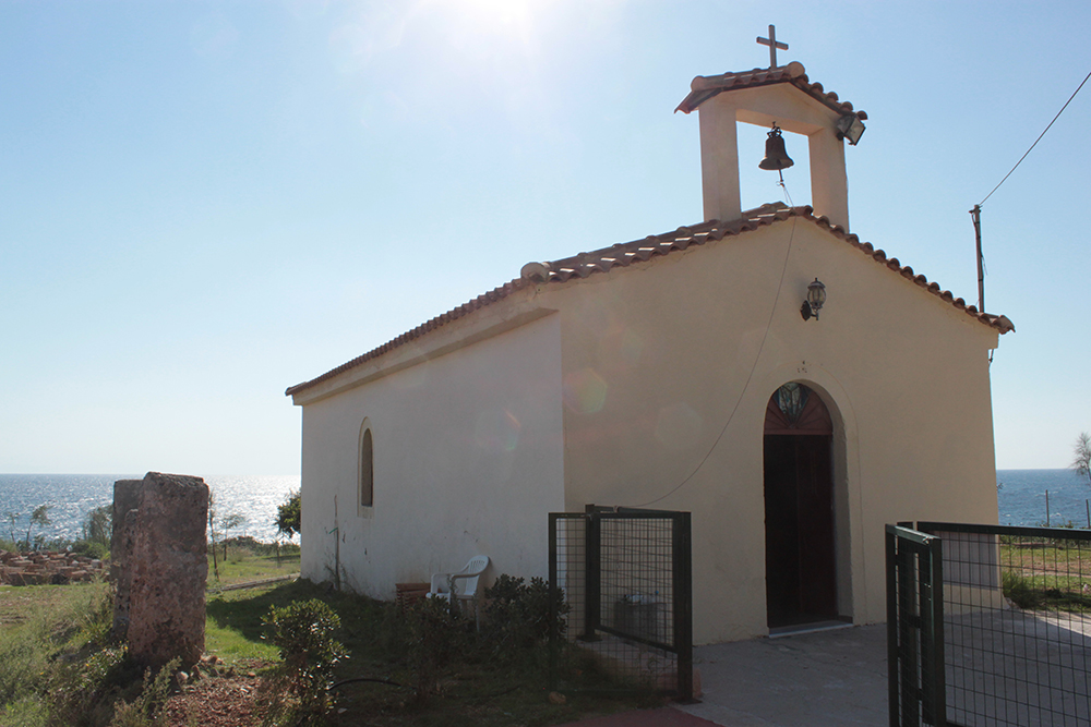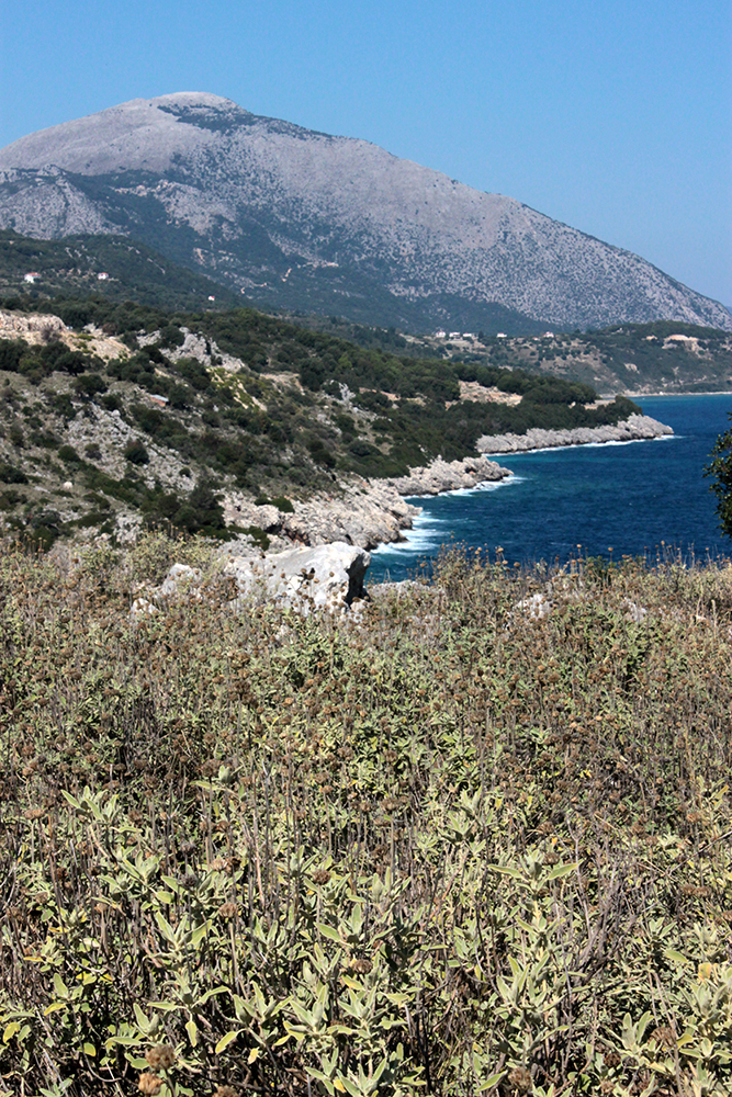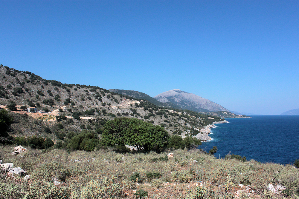 First stop was to check out the Archaic Temple in daylight. Dated at around the 6th century BCE, these ruins have some nice Doric columns and evidence of five or six rooms in situ.  Early excavation produced some interesting terracota artifacts, specifically dice, which I think may be in the Argostoli Museum, but unfortunately it was closed all season.  The site was discovered in the early 1800s and first excavated by Spyridon Marinatos (of Akrotiri fame) in 1960.  Although it is classified as a temple, there is no evidence of an altar and although I’ve seen it referred to as a temple to Apollo, I don’t think that’s conclusive.  Adjacent to the temple is the 19th Century chapel of Ayios Giorgios (St. George) and also evidence of another earlier Christian church.  It is very common at ancient sites across the Mediterranean, and probably everywhere really, to see multiple religious buildings built next to or on top of ancient temples and sanctuaries, sometimes the newer buildings using existing walls and columns or other architectural elements of the ancient buildings in their construction.