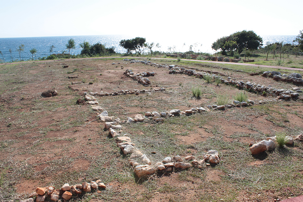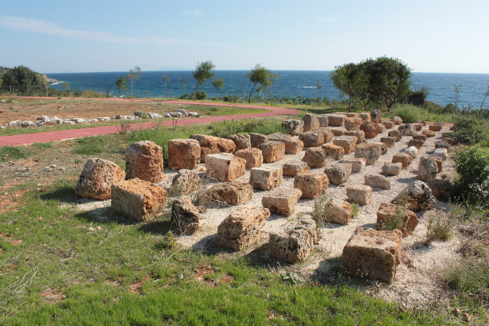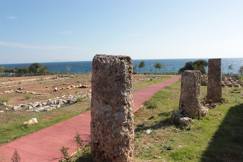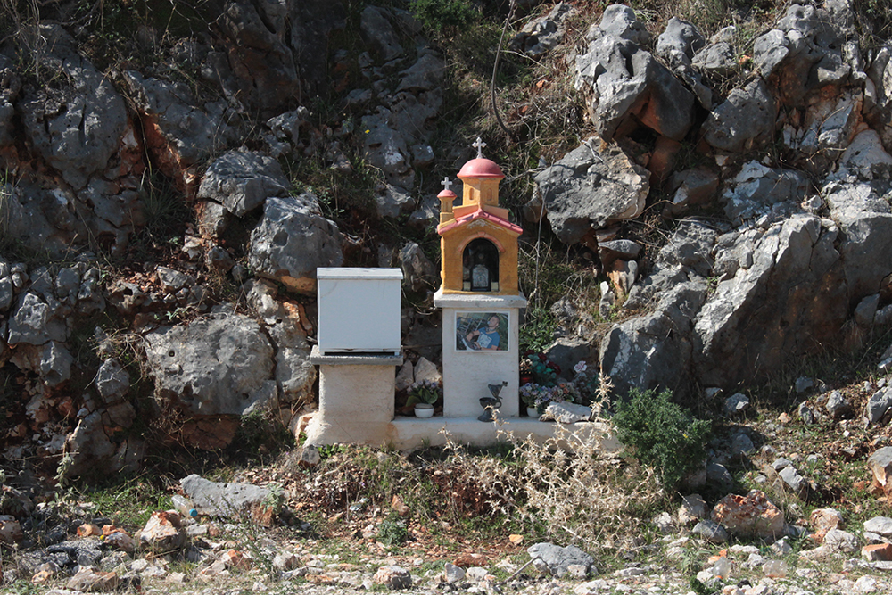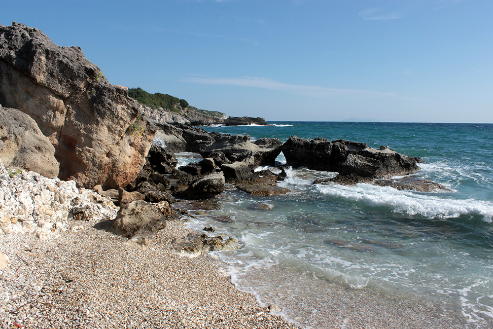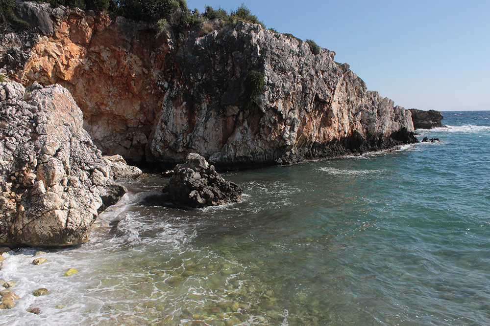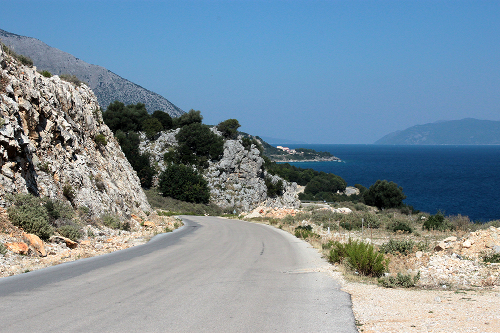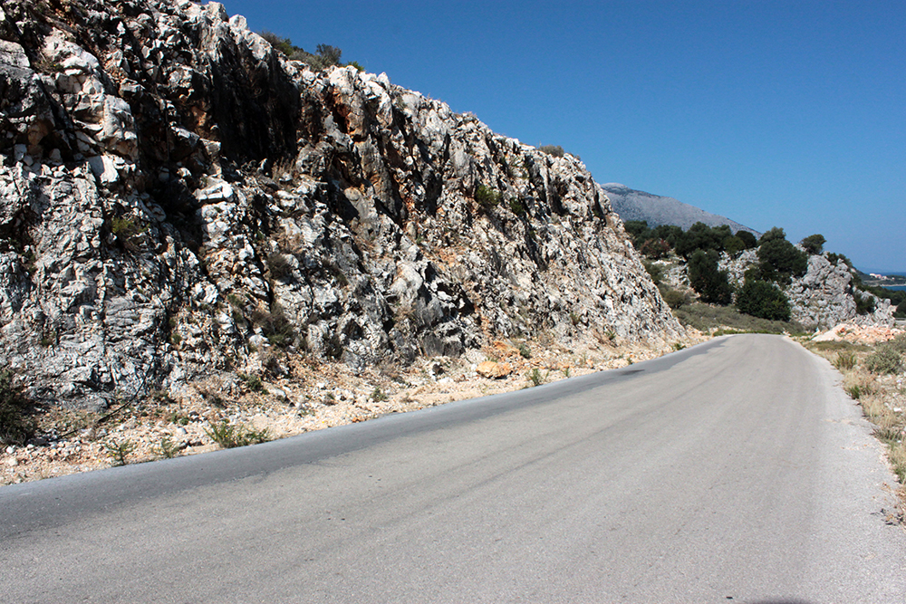 First stop was to check out the Archaic Temple in daylight. Dated at around the 6th century BCE, these ruins have some nice Doric columns and evidence of five or six rooms in situ.  Early excavation produced some interesting terracota artifacts, specifically dice, which I think may be in the Argostoli Museum, but unfortunately it was closed all season.  The site was discovered in the early 1800s and first excavated by Spyridon Marinatos (of Akrotiri fame) in 1960.  Although it is classified as a temple, there is no evidence of an altar and although I’ve seen it referred to as a temple to Apollo, I don’t think that’s conclusive.  Adjacent to the temple is the 19th Century chapel of Ayios Giorgios (St. George) and also evidence of another earlier Christian church.  It is very common at ancient sites across the Mediterranean, and probably everywhere really, to see multiple religious buildings built next to or on top of ancient temples and sanctuaries, sometimes the newer buildings using existing walls and columns or other architectural elements of the ancient buildings in their construction.