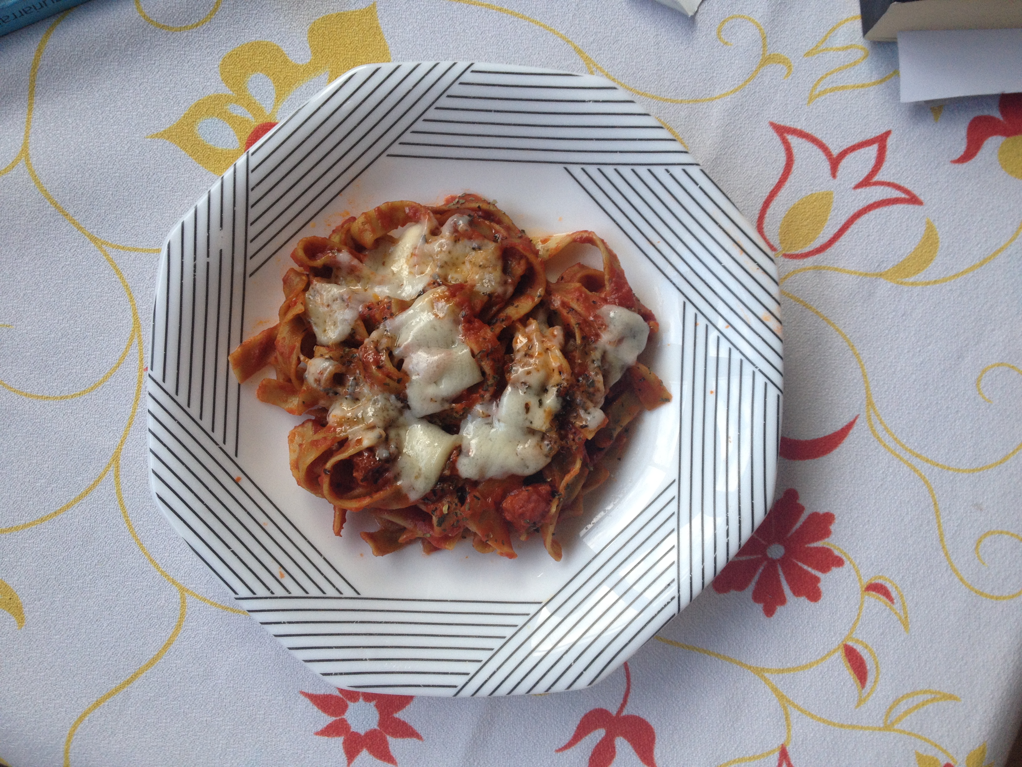Food eaten: Tuesday and Wednesday…yogurt and nectarine, spinach linguine with spicy chorizo tomato sauce and goat cheese, meatballs, serrano ham flower thing, eel tart, cod with crispy vegetables, exotic mushroom, gazpacho, beef garbanzo soup, flan.