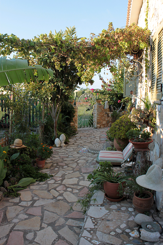 Hi honey! It really is amazing. And yes, a super-sized fairy house next to a secret ancient olive tree! Next post will have pictures for you! I’ve been here a week and I thought I might get dizzy from all the patterns and colors but there is so much solid earthy color and the mix of materials is very balanced. It truly is an art house! I want one! And when I retire here in my very own fairy stone house maybe I’ll even have a labyrinth garden, you can come visit with the kids for the summer! Okay, they probably won’t be kids by then but…wait, Gray just came back from his philandering, have the feed the wild man! xoxo