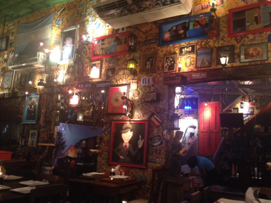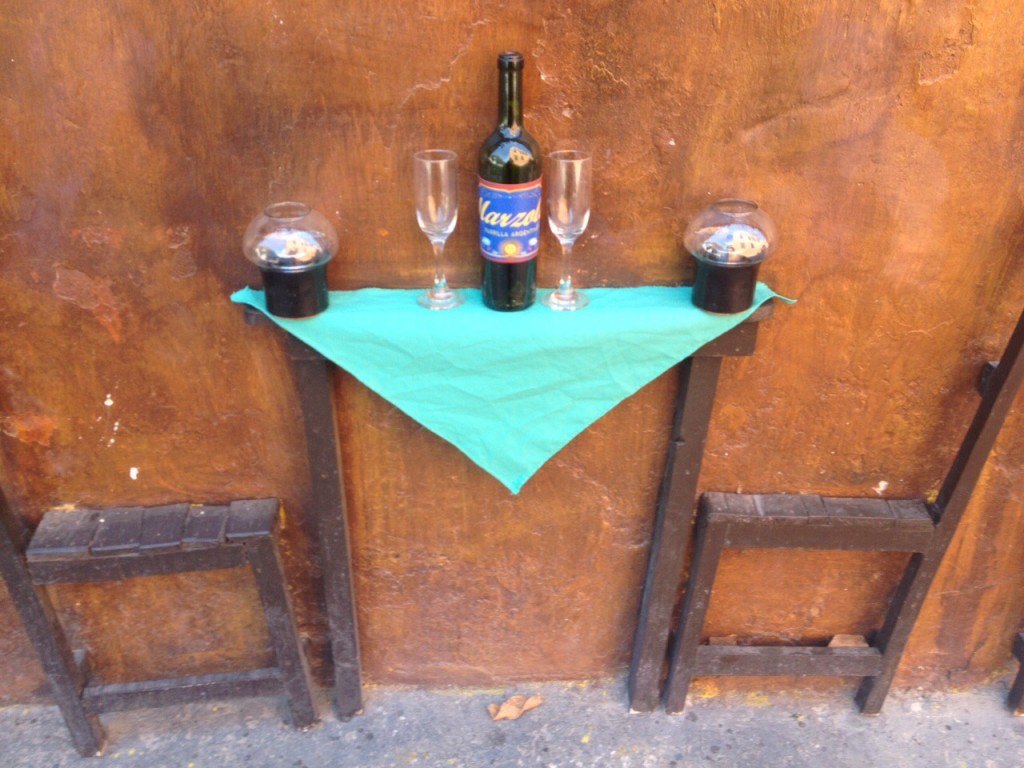 Later on I went to the modern art museum and finally totally museumed out went for some dinner. Ate at an Argentinian restaurant, El Quebracho, I saw a few times while wandering around yesterday. Was really impressed with the decor, very creative and everything is cooked on a grill on the steps leading up to the entrance. My steak was really delicious. Took some back streets hoping I didn’t bump into my arepa guy. Who am I kidding? I totally would have bought one..