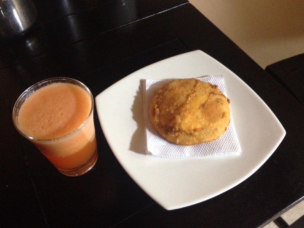 I couldn’t find my arepa guy so I cheated on him with another one. I felt bad, I passed him earlier and promised to come back later but I was too hot and hungry to keep looking. My new guy stuffed butter and even more hard provoloney cheese in the center. My plan was to bring it back to my apartment, go up to the roof with an ice cold Aguila and my book and sweat myself into a siesta. No dice. I ate most of it before I even turned the corner. And forget about laying on any roof…the sun is so scorching I’m sure I saw the pool boil. And I’m a tar beach baby oil survivor from Brooklyn so you know that’s one hot techo.