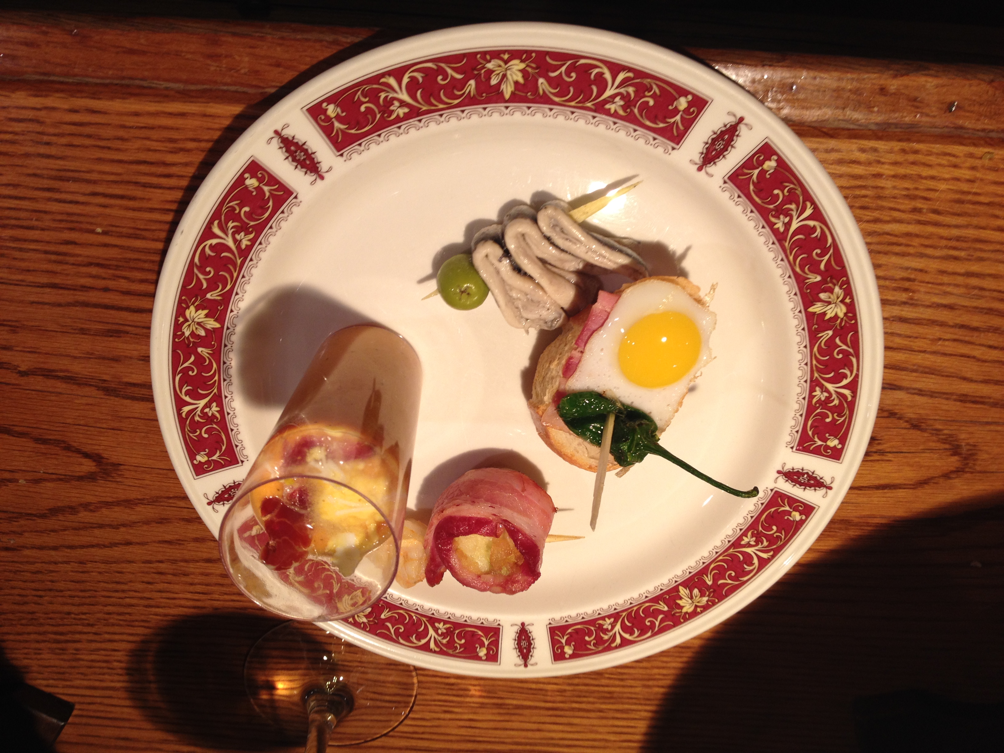 Okay, pintxo time…I had four today. But I’m not counting the gazpacho in the glass, even though it did have a quail egg and serrano ham in it.